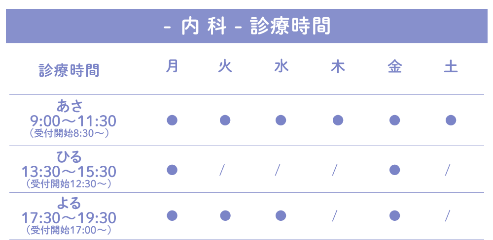 *診療開始時間は、朝9時から・昼13時30分から・夜17時30分からです。